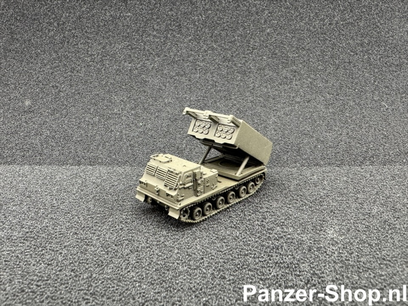 This 1:160 N scale model represents the M270 Multiple Launch Rocket System (MLRS), a modern tracked artillery vehicle developed by the United States. The M270 has been widely used by NATO forces since the 1980s and is known for its ability to launch a variety of rockets and missiles with high precision. In service with the US Army, British Army, German Bundeswehr and several allied nations, the M270 played a crucial role in modern artillery tactics. This detailed model is ideal for dioramas, military model collections and N scale railway layouts.